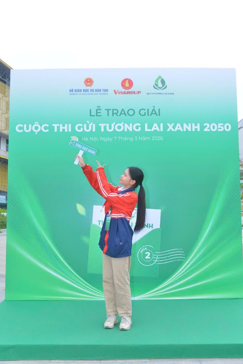 Trải qua các vòng dự thi với nhiều bài viết chất lượng đến từ học sinh trên toàn quốc, em Lê Thu An – học sinh lớp 8A1 - Liên đội phó Trường THCS Vân Canh đã thể hiện sự sáng tạo, tư duy sâu sắc và tinh thần trách nhiệm đối với môi trường, xuất sắc đạt Giải Ba nội dung Viết thư – Bảng Trung học tại vòng Chung kết cuộc thi “Gửi Tương Lai Xanh 2050” – Mùa 2.